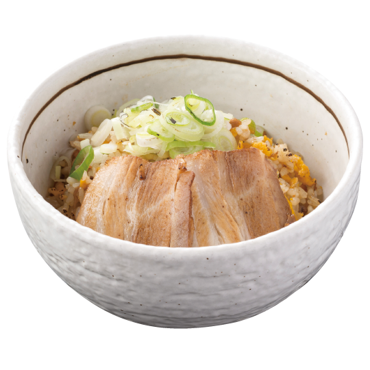 特製のタレに漬け込んだ黒豚チャーシューさっと炙ってon THE ごはん!特製タレが ごはんに染みてます。新鮮ネギと一緒にお楽しみください!